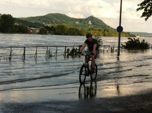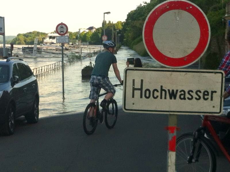 Auch bei uns ist der Rhein über seine Ufer getreten, jedoch bei weitem nicht so sehr, wie an Mulde und Elbe. Wir haben natürlich dem Spektakel einen kurzen Besuch abgestattet, aber bisher sind alle ganz entspannt und nur die Uferpromenade ist etwas feucht.