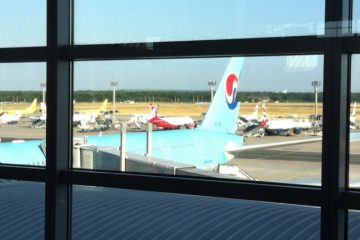Ein riiieeesiges Ungetüm! Nicht ein Mal habe ich unseren Flieger richtig aufs Bild bekommen. Der A380 der Korean Air hat drei Eingänge: vorn unten für die First(?)Class. Dahinter ist der Eingang für die Economy. Die zweite Etage hat einen extra Eingang, hier boardet die Business Class. Zwar hatte ich einen Weiterlesen…